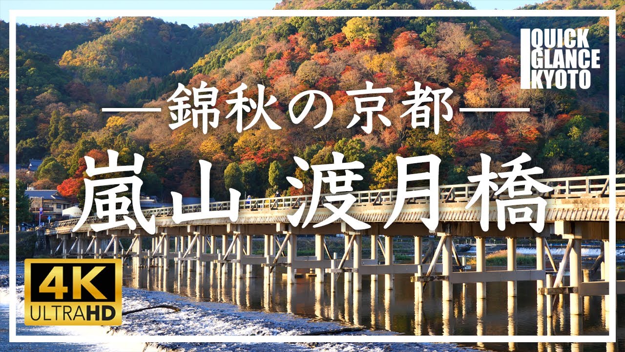 この橋は桂川にかかり、その背景には嵐山の紅葉が広がります。
